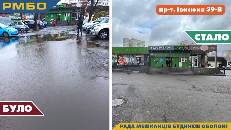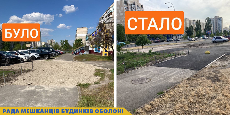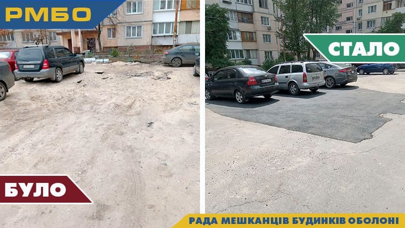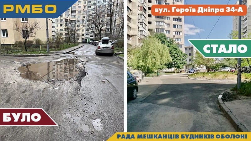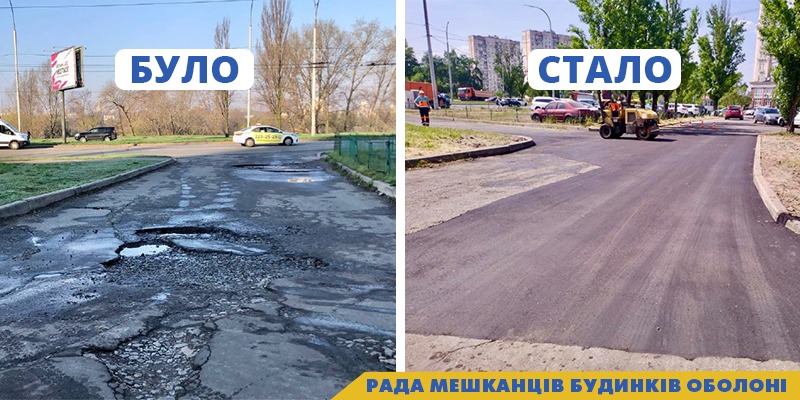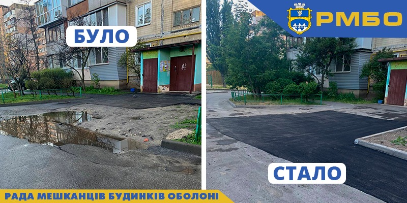 ✅пр-т. Оболонський 5, відновлено благоустрій і пошкоджене асфальтове покриття біля будинку;