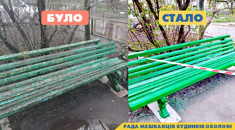 ✅ вул. Левка Лук’яненка 3-В, виконано ремонт лави для сидіння і відпочинку;