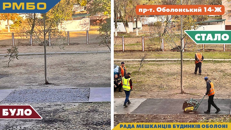 ✅ пр-т. Оболонський 40, виконано ремонт асфальтового покриття пішохідної доріжки;